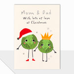 This particular Christmas design features a pair of playful Christmas brussel sprouts and is perfect for your parents at Christmas.