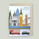 Card size when packed: 125 x 175mm The Eden Collection Containing subtle hints to our award winning Halcyon Collection, our newest everyday range see's exquisite illustrative designs paired with subtle colour palettes. This particular birthday card design features a London cityscape with the caption 'Happy Birthday'. Each design features a deep emboss and comes printed on FSC accredited board, finished sympathetically with a brown polka-dot kraft envelope.