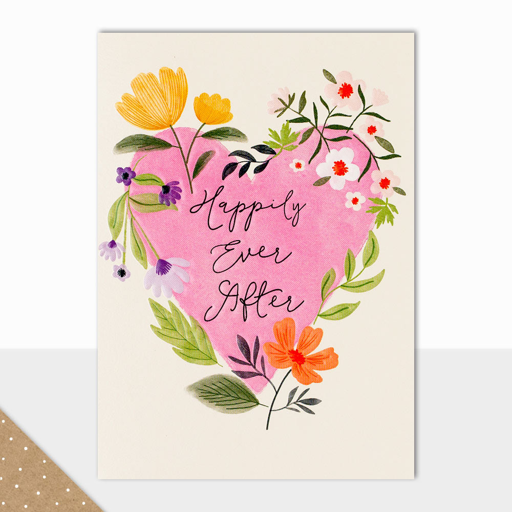 This particular design features a love heart on a white background, with the caption Happily Ever After.
