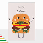 This particular design features a happy little burger and is perfect for anyone celebrating their birthday.
