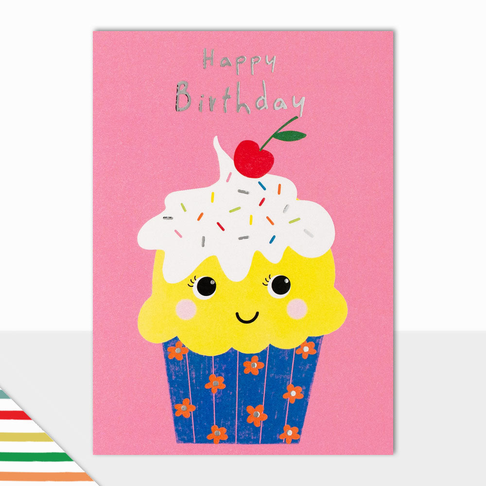 This particular design features a happy little cupcake and is perfect for anyone celebrating their birthday.