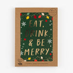 Blank inside, this pack features a colourful tree design with the caption 'Eat Drink & Be Merry' and comes with x5 accompanying envelopes and packaged in a brown craft box.